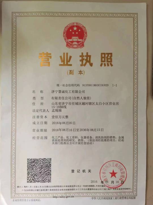 濟(jì)寧慧誠(chéng)化工有限公司 成立于2006年,坐落于儒家文化發(fā)源地、被譽(yù)為孔孟之鄉(xiāng),禮儀之邦的山東濟(jì)寧,公司集研究開(kāi)發(fā)、改善和技術(shù)服務(wù)推廣為一體,在金屬表面處理、清洗助劑、行業(yè)助劑領(lǐng)域當(dāng)中以強(qiáng)大的研發(fā)實(shí)力、便捷的現(xiàn)場(chǎng)技術(shù)指導(dǎo)、完善的售后服務(wù)獨(dú)樹(shù)一幟,處于行業(yè)領(lǐng)先地位,贏(yíng)得眾多客戶(hù)的認(rèn)同和贊譽(yù), 公司擁有現(xiàn)代智能化、多學(xué)科化、專(zhuān)業(yè)化、現(xiàn)場(chǎng)模擬化的科研中心;擁有完善的科學(xué)檢測(cè)設(shè)備;建立了強(qiáng)大的網(wǎng)絡(luò)平臺(tái)、溝通交流平臺(tái)、人性化服務(wù)平臺(tái);遵循以文化促和諧,以和諧求發(fā)展,在做事先做人文化的基礎(chǔ)上,為每一位產(chǎn)品使用者服務(wù)。    我們一如既往的踐行...